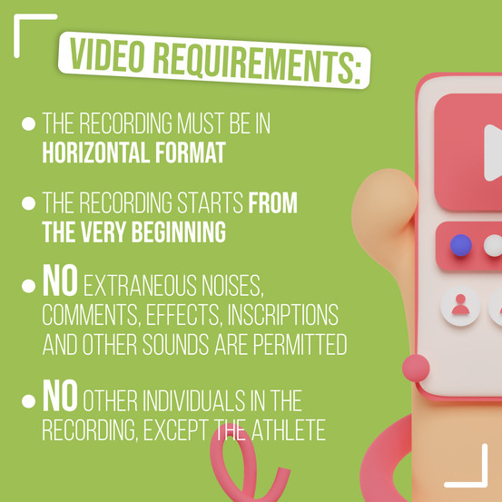 Now let's move from theory to practice! As you know, to participate in a virtual tournament, thereās no need to come to the event venue ā and this is undoubtedly an important advantage that everyone can see tallying the travel and lodging expenses. Significant savings aside, you need to record your camera performance and upload your video on MyUventex.com. We have put together a terrific guide for you, where we explain how to make a great video in simple steps. These requirements are easy to fulfill and are essential for your participation to go smoothly.